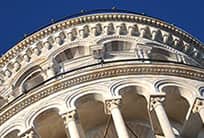 Drive through the lovely Tuscan countryside en route to the historic town of Pisa, located on the banks of the Arno River. Enjoy a short trolley ride that takes you directly to Miracle Square, next to the famous Leaning Tower. During World War II, much of Pisa was destroyed by German and Allied bombing, however the cathedral, baptistery and famous leaning tower escaped unharmed. Arriving at the Field of Miracles, join your guide for a climb up the 294 steps and discover the world famous Leaning Tower. Built to display the wealth of Pisa, the bell tower began leaning during construction due to the foundation settling unevenly as builders reached the fourth story. The builders compensated for the angle but the tower continued its tilt. Today, the tower leans 14 degrees from perpendicular. Continue down to the open air square for a brief explanation of the Cathedral and the Baptistery. You’ll have some free time to browse for souvenirs and gifts at the many stalls lining the walk to the Field of Miracles.