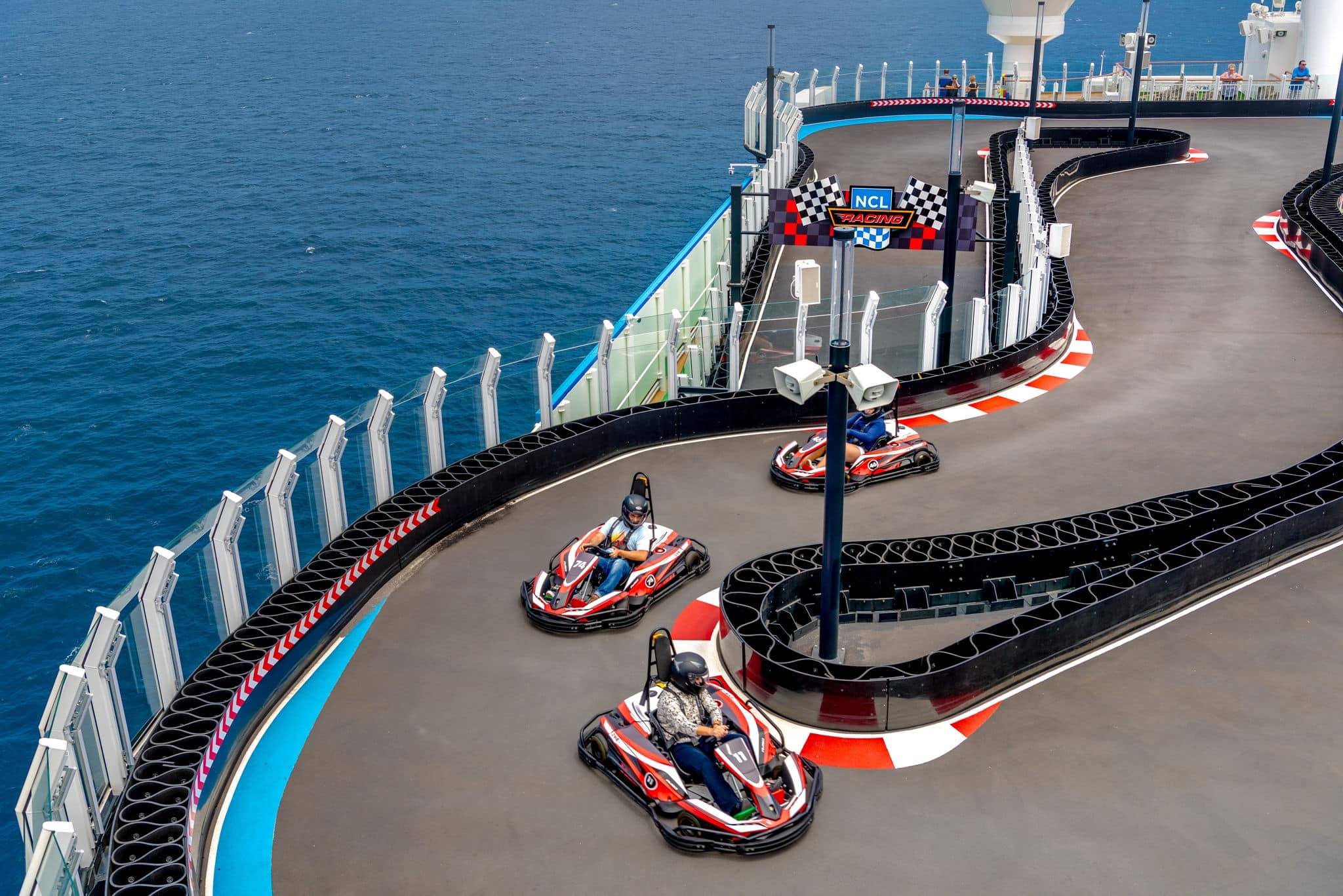 Imagine racing around hairpin turns against a backdrop of Alaska’s expansive glaciers and rugged mountains or the Mediterranean’s pristine vistas. Norwegian’s two-story race tracks are the largest at sea and offer a unique way to “cruise” incredible destinations. Whether you’re taking a car out for a first spin around the track or enjoying a victory lap, get ready to zoom into an incredible vacation.