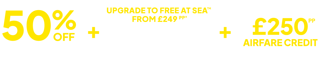 Planning the perfect cruise holiday shouldn't break the bank - here you'll find our latest promotions + details on NCL's Free at Sea™ - the best value at sea! Enjoy offers like Speciality Dining, Excursion Credits, Premium Beverages and more.(Additional cost will apply for optional Free at Sea™ Upgrade)