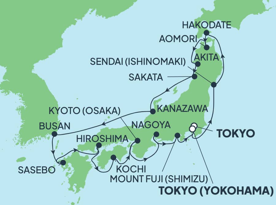 Once a sleepy fishing village, Yokohama is now one of Japan's largest ports and your gateway to Tokyo. Ancient traditions and historic sites blend into modern culture, crafting a city unlike anywhere else. In Tokyo, you can walk amongst both neon-glowing skyscrapers and regal temples. Browse stores showcasing the latest advances in technology or retreat to one of the tranquil gardens surrounding the Imperial Palace. Savour traditional cuisine at a Michelin-starred restaurant and witness the centuries-old sport of sumo wrestling. This cosmopolitan hub offers a vast selection of attractions and activities and a wealth of culturally and historic sites. Whether this is your first or fifth visit to the city, Tokyo will captivate your imagination.