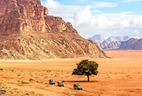Explore Wadi Rum's vast, desert landscape. Off-road vehicles take you through cliffs and unique mountains. Meet Bedouin ...