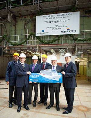 “This steel block for Norwegian Joy marks another milestone of our successful partnership with Norwegian Cruise Line,” said Bernard Meyer, Managing Director of MEYER WERFT. “We are thrilled to build a totally new ship which is designed for the fast growing Chinese market and will be delivered in just 12 months.”