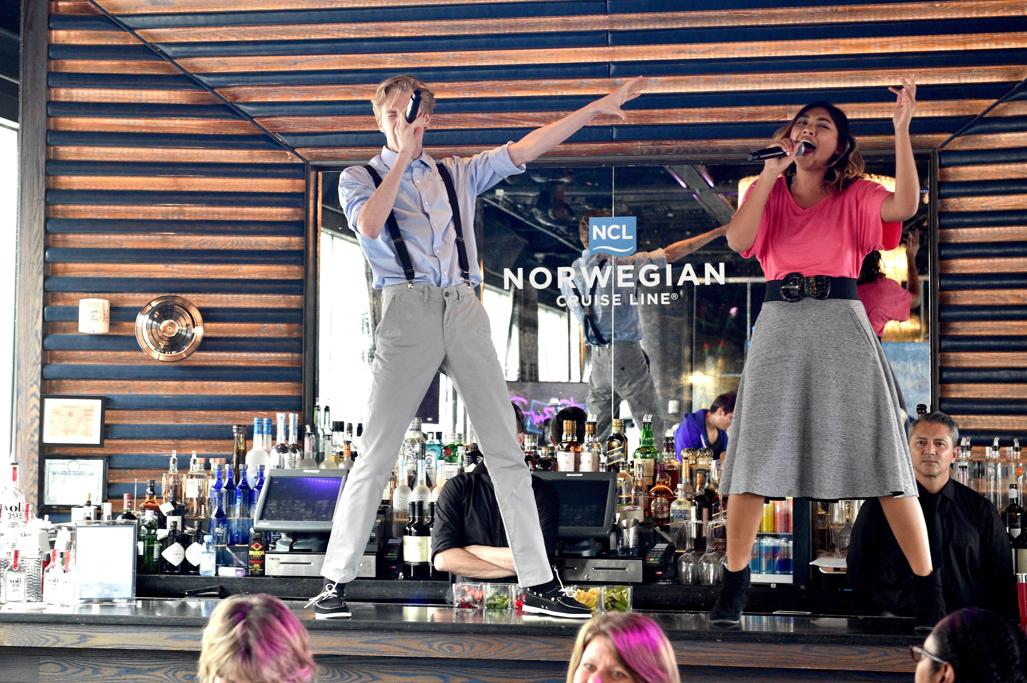 Guests were able to “walk the plank” in a virtual reality segment of the largest ropes course at sea and pose for shareable photos with the ship's celebrity Godfather Mr. Worldwide. The exclusive afternoon was topped off with an electrifying performance from For the Record: The Brat Pack, one of Norwegian Escape's award-winning Broadway-style shows.